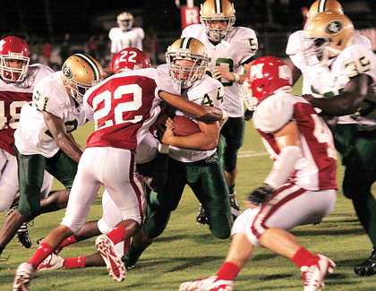 Lightning rarely strikes twice in the same place, but at Moody Field Friday night, lightning seemed to strike numerous times. Both teams were scoring quickly and often. The Red Knights duo of Nathan McIntosh and Tre’ Boston hooked up for three touchdowns. Meanwhile, teammate Marcus Lewis had two quick hitters through the Island Coast defense and sprinted for scores of 45 and 49 yards, respectively.