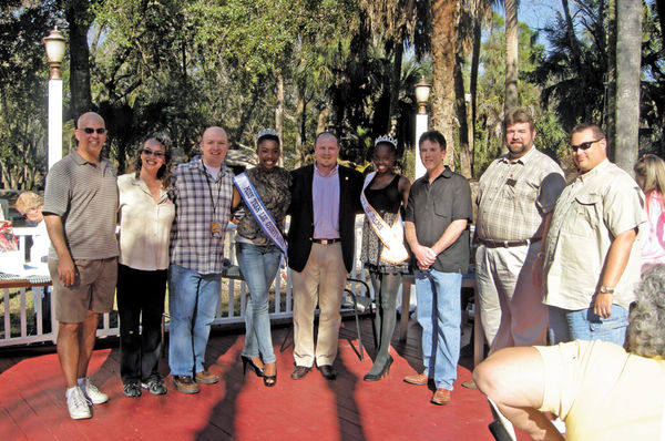 New North Fort Myers Honorary Mayor Michelle Brisendine, Marketing Representative for Servpro of North Fort Myers/Punta Gorda, is pictured with past honorary mayors and officials at the Honorary Mayor Gala. Also pictured are other mayoral candidates Jerry D. Brooks of J Brooks & Associates, Inc., Todd Nixon, Disc Jockey from Cat Country; former Honorary Mayors Tommy Hoolihan, John Gardner and Deputy Jarrod Cantrell. Florida State Representative Matt Caldwell presented the honor, and Miss City of Palms Rose Badeau and Miss Teen Lee County Brittani Anderson were on hand for the event.