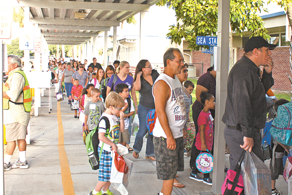 Parents and students lined up outside of Tropic Isles Elementary School Monday morning, waiting in anticipation for the beginning of another school year.