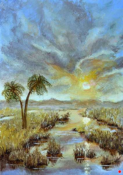 Some paintings on display are as small as 2.5 inches in width and height. Many are so small, in fact, that magnifying glasses will be hanging and available for use by all visitors to see their fascinating minute details. The magnifying glasses will also be useful to fully appreciate the intricate miniature artworks also being displayed in this exhibition of miniaturist Alberto Chailosky of Fort Myers.