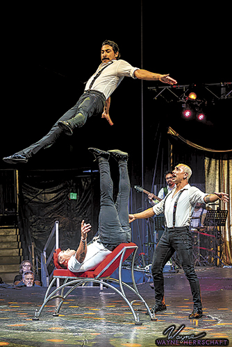 “Our paranormal shows are dark and mixed with acrobatics and theater, and are spooky,” Midi said. “They are playful, too. We put the audience in a mysterious world. It’s dark and mysterious with acts like a girl hanging by her hair, some motorcycles flying around, spooky characters, and even magic. We don’t try to terrify, but it is spooky with dark fantasy. We tell a story.”