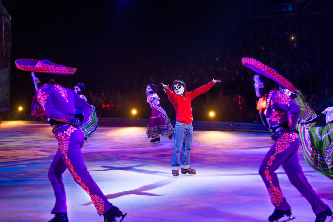 Embark on a quest with Mickey Mouse and pals as they follow Captain Hook’s treasure map for clues to find Tinker Bell after he attempts to capture her magic. Journey across the Marigold Bridge with Miguel from Disney Pixar’s Coco into the magnificent and mystical Land of the Dead and discover a vibrantly colorful performance with skeletons atop sway poles dancing over the audience in a beautiful cultural celebration of family. Travel to the wintry world of Arendelle and sing along with Elsa as video projection creates a kaleidoscope of crystals to help build her ice palace. Witness Belle lift into the sky as the enchanted chandelier comes to life high over the ice. Demonstrate the power of teamwork when Buzz Lightyear, Woody and Jessie recruit the Green Army Men for a daring rescue in Andy’s room. Laugh hysterically as the hilarious pirates flip, tumble, and twist on tumble tracks, stilts, and more to showcase their talents for Captain Hook. Sail away with Moana on her daring voyage across the ocean and bravely encounter the fiery wrath of Te Ka.