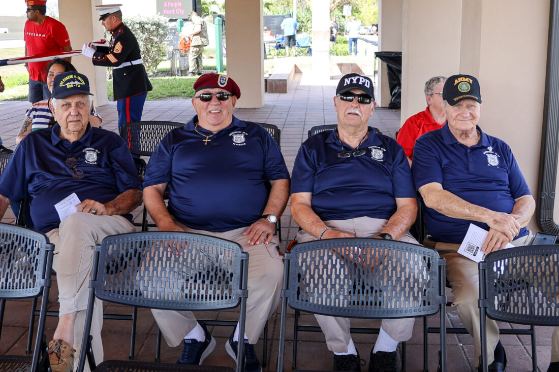 Four attendees of the event were from left to right: George Smith (US Army SGT E5, Vietnam War veteran), George Einsetler (NYPD), Carlo Dambrosi (US Army SPEC4 – E4, NYPD DET 2nd grade), and John Meda (US NAVY, Korean War veteran, NYPD DET 2nd grade). MARK CLIFFORD