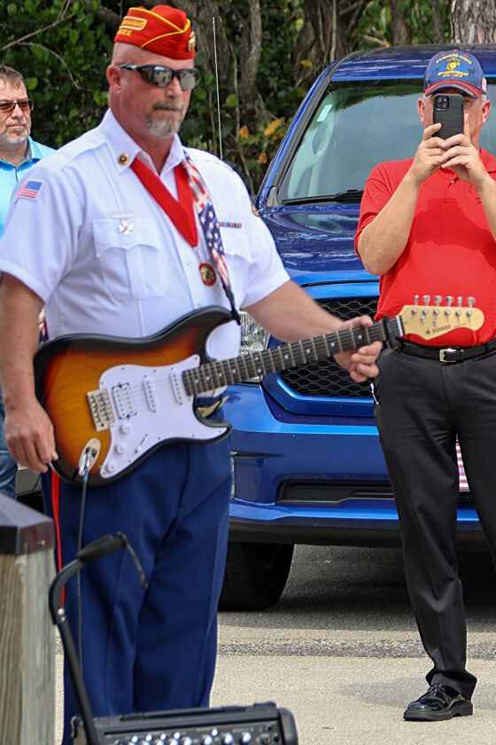 Marine Corps League Sr. Vice Commandant Matthew Giambrone plays “Taps” on his electric guitar. MARK CLIFFORD