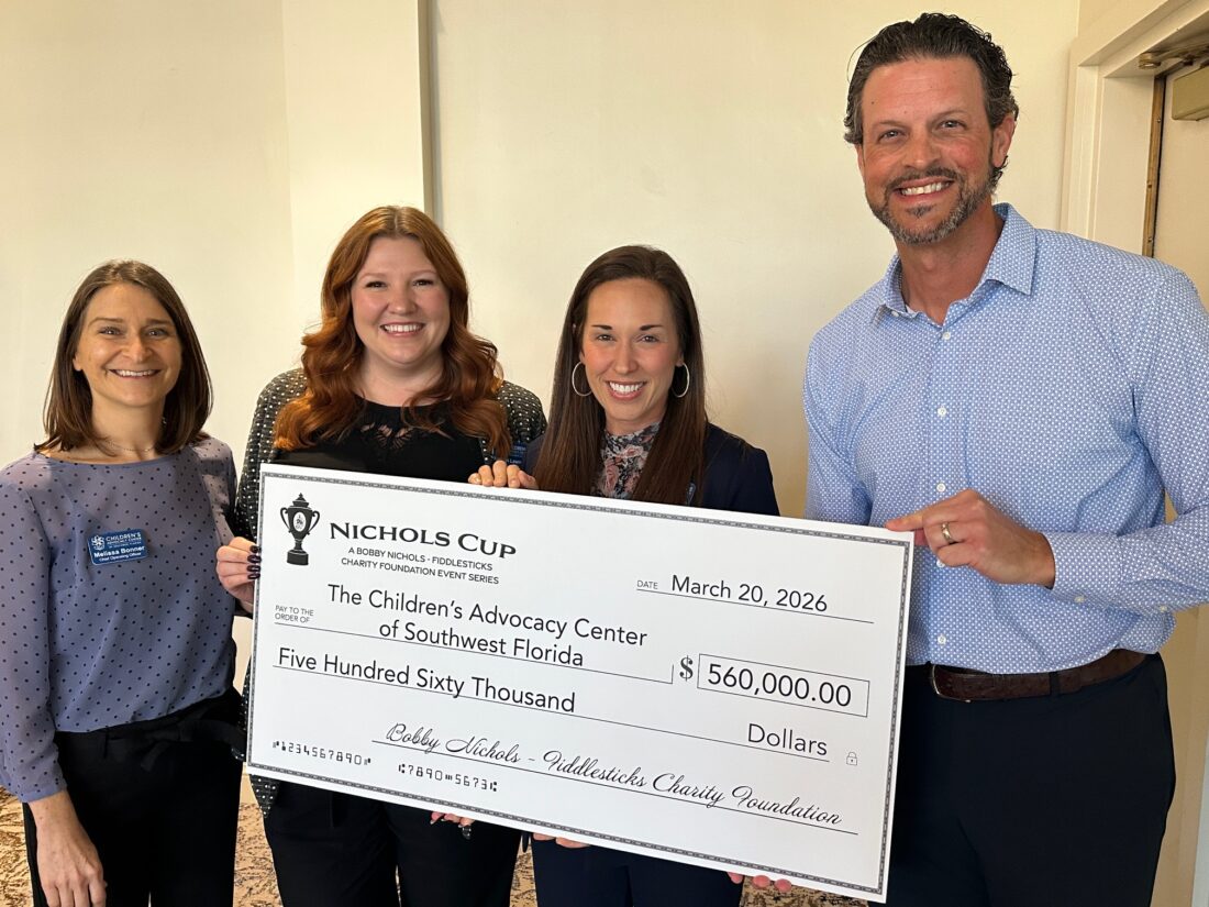Since 2002, Nichols Cup has supported local children’s charities in helping more than 100,000 abused and neglected children. Funds from this year’s event were distributed at Fiddlestick’s annual Piper’s Meeting on March 20 among the foundation’s two primary charity partners, Children’s Advocacy Center of Southwest Florida and Abuse Counseling & Treatment, and additional beneficiaries Blessings in a Backpack, Liberty Youth Ranch, Anti-Human Trafficking Program and Pace Center for Girls, Lee.
