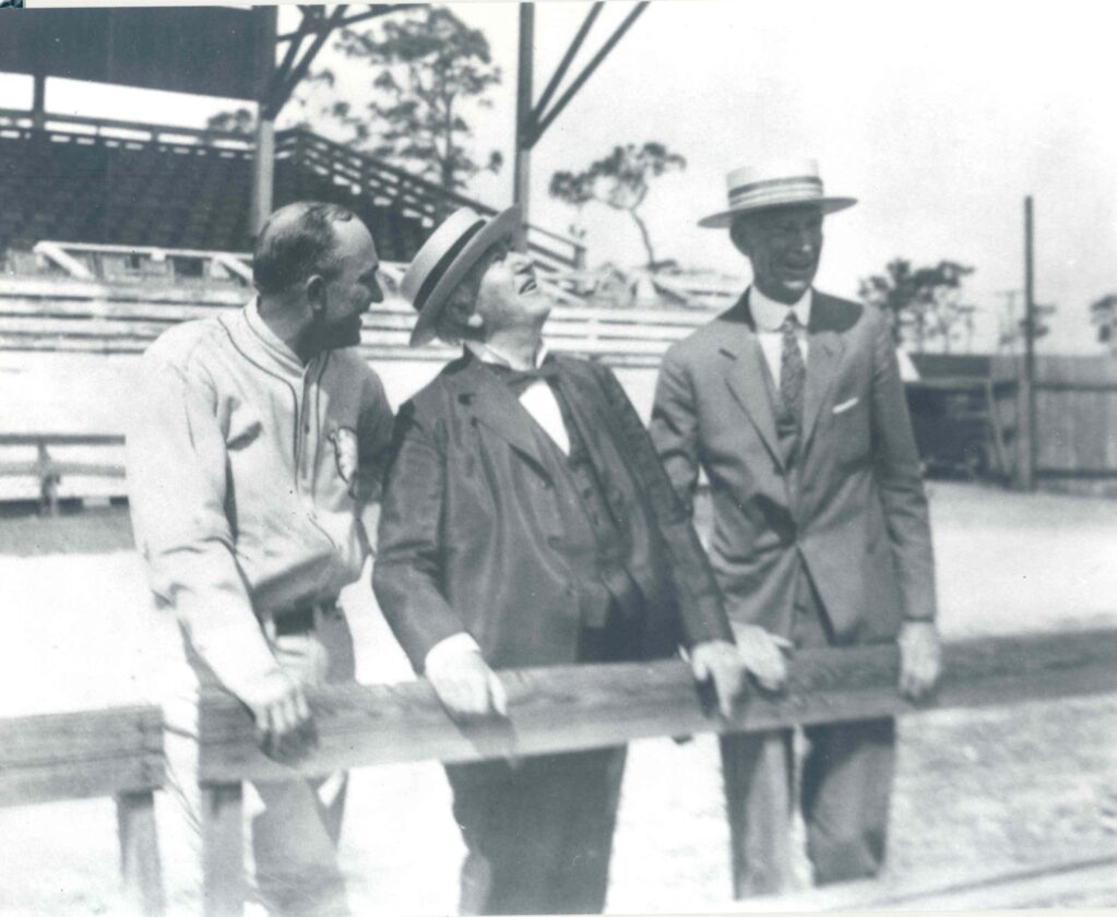 Ty Cobb, Thomas Edison, and Connie Mack at Terry Park in 1927. PROVIDED